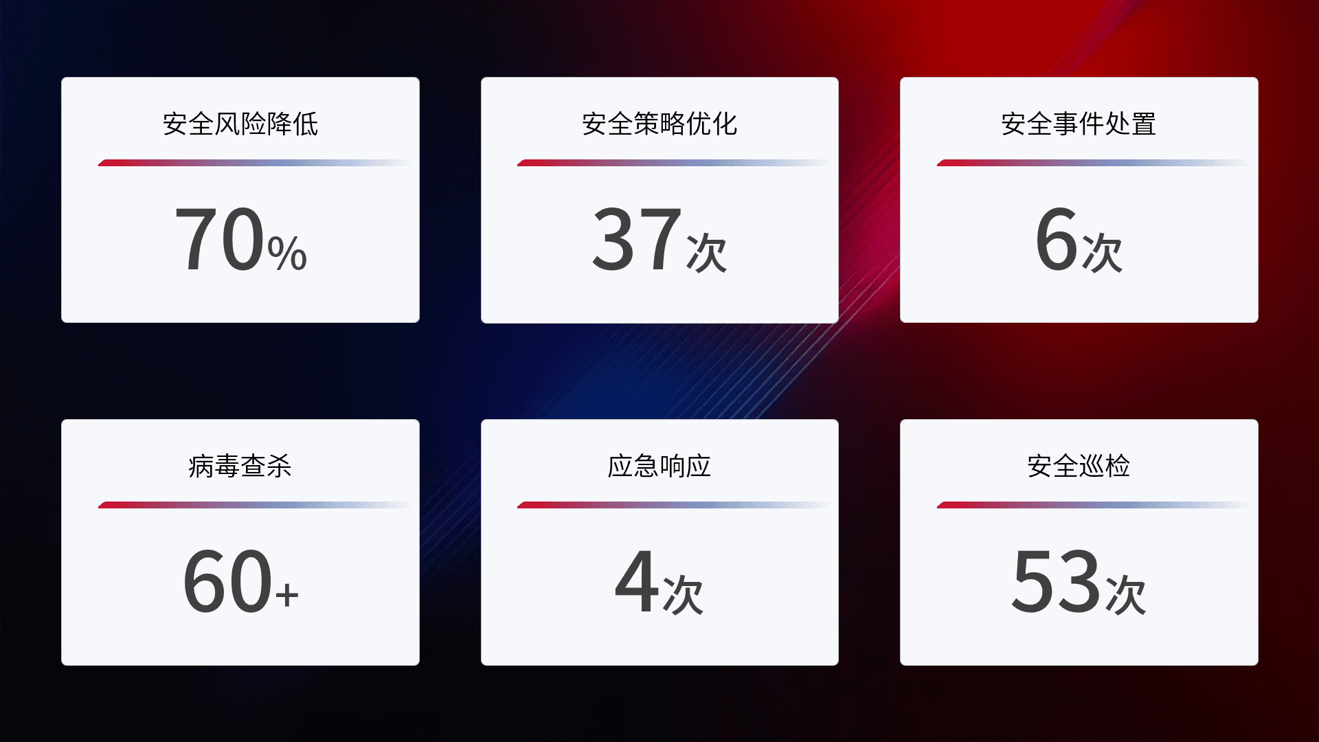 提供全面的安全事件报告体系,,包括处置报告、、、、周报、、、、季度和年度总结,,,,结合持续监控,,,,帮助客户深入了解网络安全状况。。
